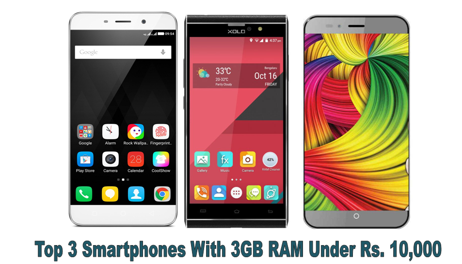 Top 3 Smartphones With 3GB RAM Under Rs. 10,000