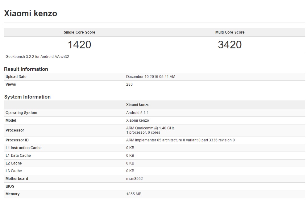 As for benchmark scores, the Kenzo scored 1561 and 4541 points in single-core and multi-core tests respectively. Rest of the specifications of the phone are scarce as of now and are likely to surface in the coming days. This information should be taken with a pinch of salt since Xiaomi has not revealed any details about the smartphone officially yet.
